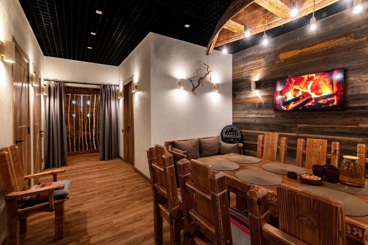 Также у нас имеется бар, где вы можете заказать блюда русской кухни. Только не забывайте, что плотная трапеза непосредственно перед посещением парной - это не самая удачная идея, по мнению врачей. А вот после парной можно трапезничать смело!
